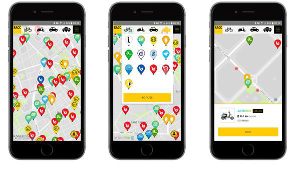 El RACC lanza una app que informa de la oferta de transporte compartido y público