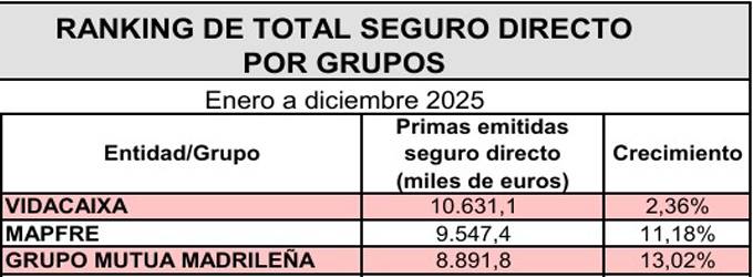Ranking 2025: se estrechan las distancias entre VidaCaixa, Mapfre y Mutua Madrileña