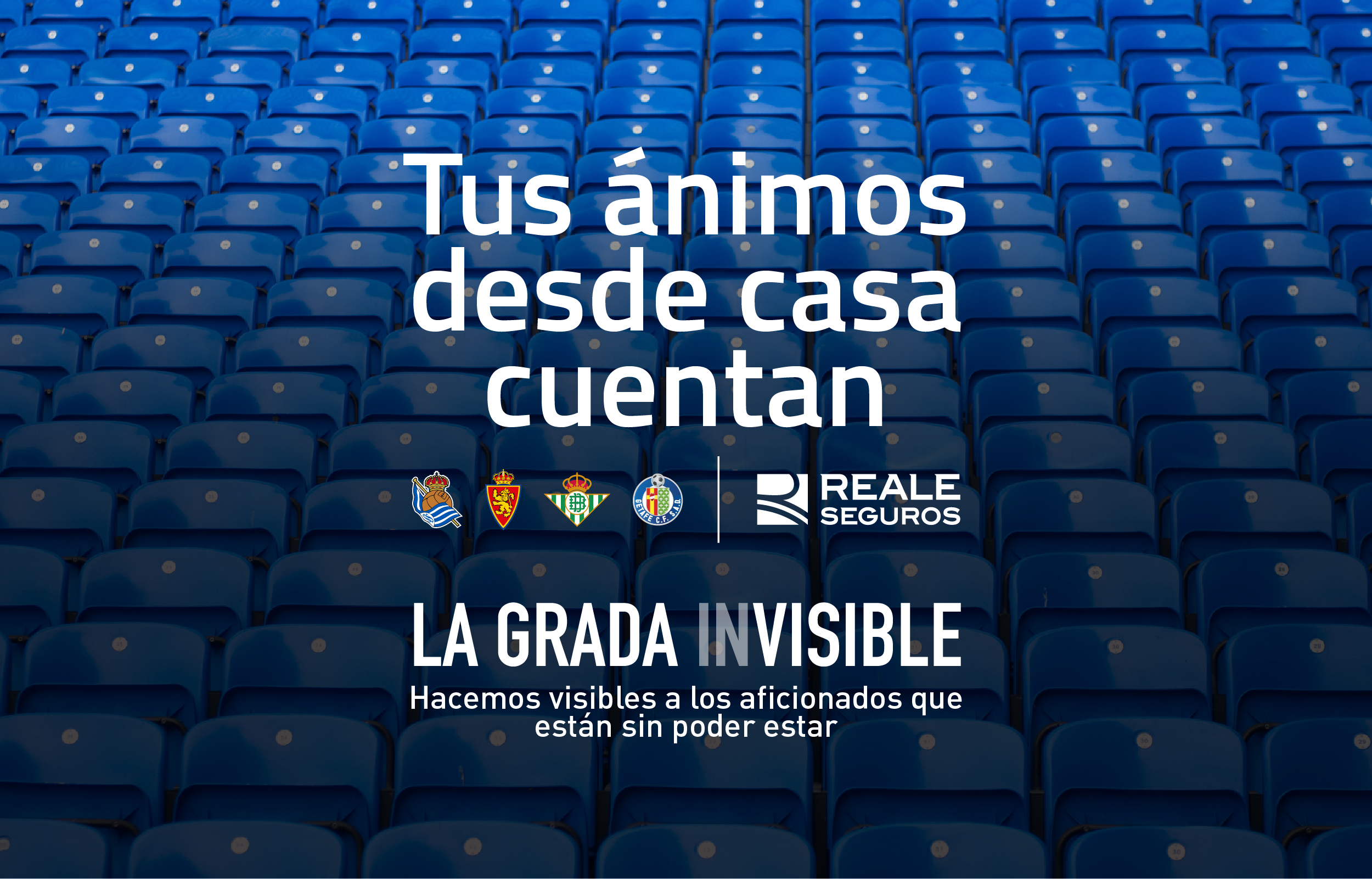 Reale Seguros ha puesto en marcha 'La Grada Invisible', una iniciativa con la que pretende acercar a los aficionados a sus equipos de fútbol, ya que este fin de semana se reanuda La Liga pero lo hace sin público en los estadios. Así, la aseguradora ha decidido ceder su espacio publicitario en los campos de fútbol a los seguidores, para que aparezcan imágenes suyas animando a los futbolistas durante el partido que se esté disputando a puerta cerrada.