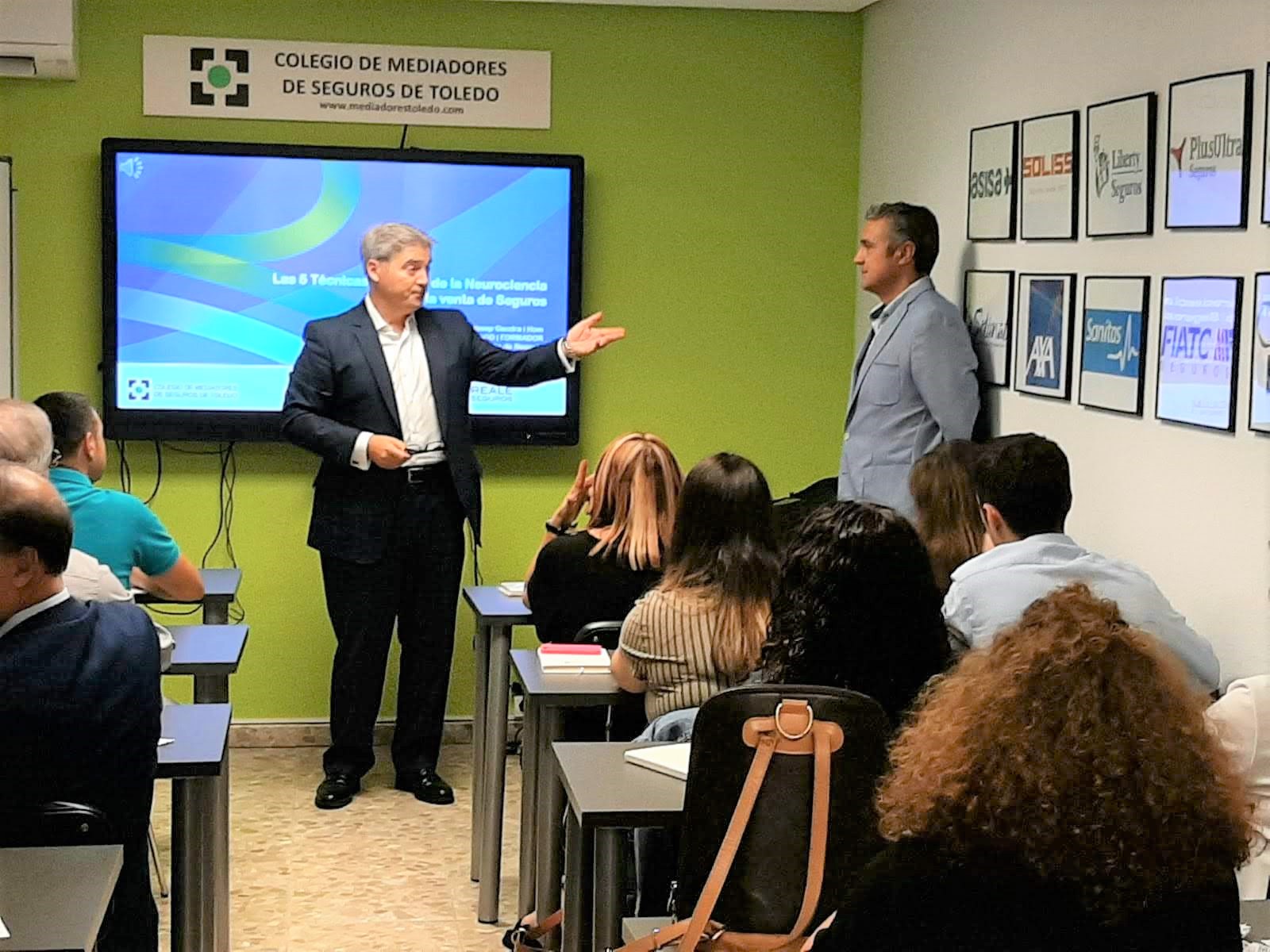 Reale impartió una jornada sobre técnicas de neuroventa en los colegios de Toledo y de La Rioja de la mano de Josep Gendra, psicólogo coach y responsable de Formación de Negocio de Reale Seguros. Los asistentes conocieron de primera mano las '5 Técnicas (casi) infalibles de la neurociencia para vender seguros'.