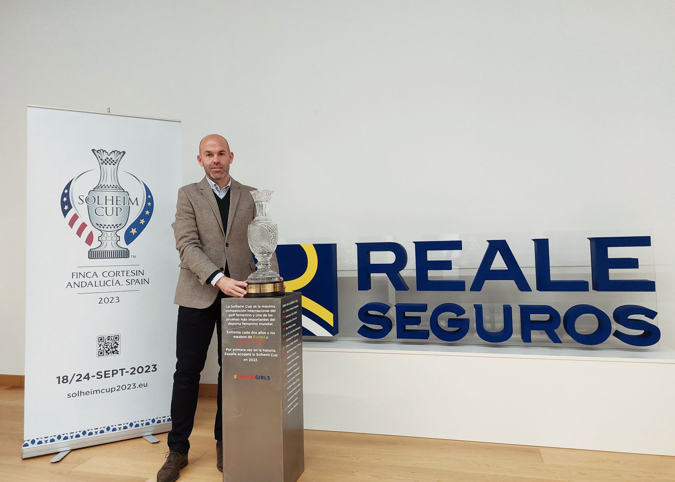 "Estamos muy ilusionados con la llegada del trofeo a nuestras oficinas, ya que estamos deseando que llegue el próximo mes de septiembre de 2023 y conocer qué combinado se lleva este trofeo. El poder unirnos al Open de España y a la Solheim Cup 2023 refuerza nuestro compromiso con el deporte en general y el golf en particular, con el que tenemos una especial relación ya que llevamos más de 14 años apoyando a nuestros deportistas y las competiciones nacionales", según Ignacio de la Hoz, director del Departamento de Marca y Patrocinios de Reale Seguros.