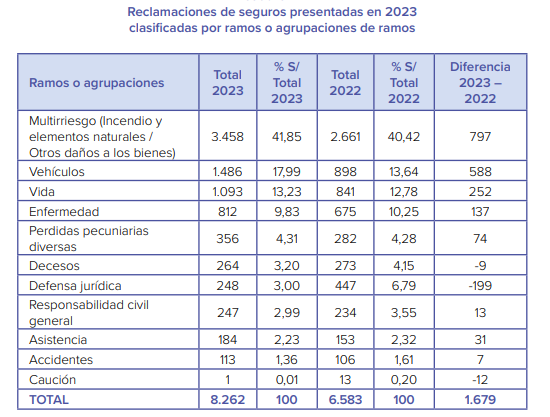 Luego se sitúa Autos, que ha recibido 1.486 reclamaciones, 588 más que un año atrás; y Vida ha sido objeto de 1.093 reclamaciones, 252 más. Entre estos 3 ramos acumulan más del 73% de las quejas presentadas.