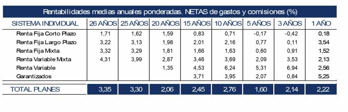 La rentabilidad de los Planes de Pensiones individuales se sitúa en el 2,76% a 10 años