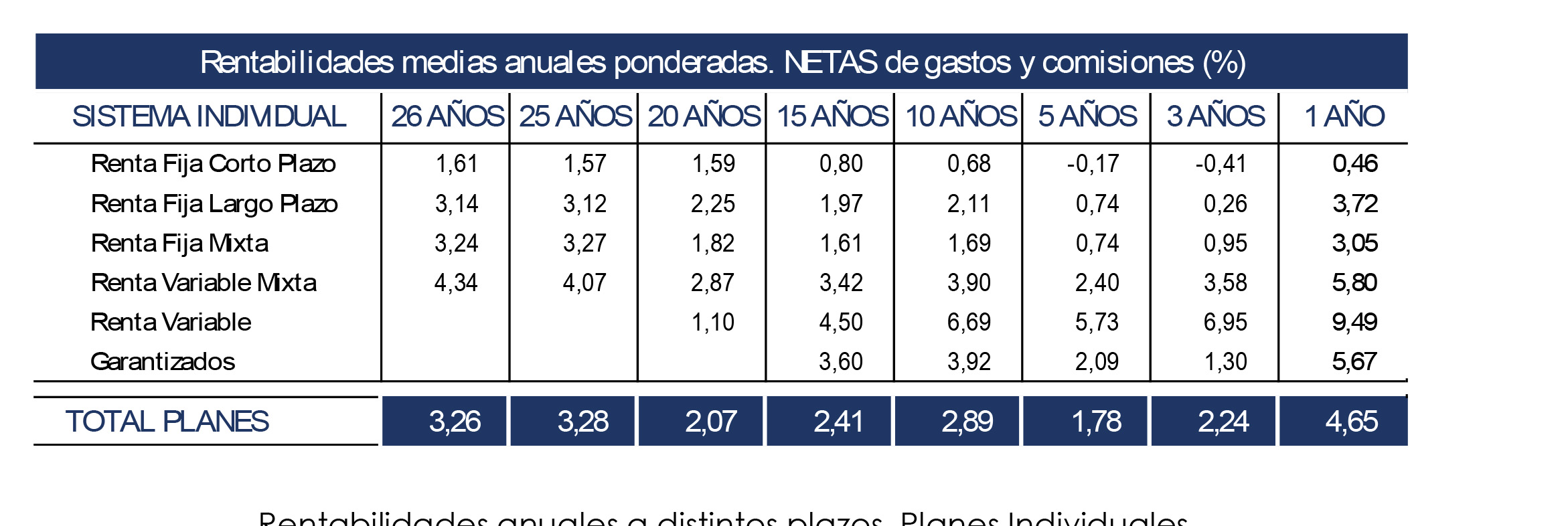 Los Planes de Pensiones del Sistema Individual mejoraron su rentabilidad en octubre. Los datos avanzados por Inverco sitúan el rendimiento a 1 año para el total de planes en el 4,65%, y en el 1,78% a 5 años. A más largo plazo, la rentabilidad al cierre de octubre para los planes a 10 años se situó en una media del 2,89%.
