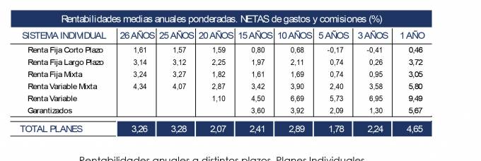 La rentabilidad de los Planes de Pensiones individuales se sitúa en el 2,89% a 10 años