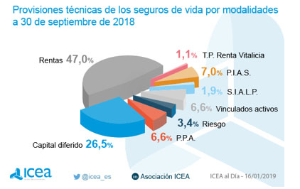Al finalizar el tercer trimestre del pasado año las provisiones técnicas de los seguros de Vida alcanzaron los 187.671 millones de euros, lo que supone casi un 3% más que un año antes. Los seguros de Rentas, con un 47% del total, y los de capital diferido con el 26,7%, representan el mayor volumen, según destaca ICEA.