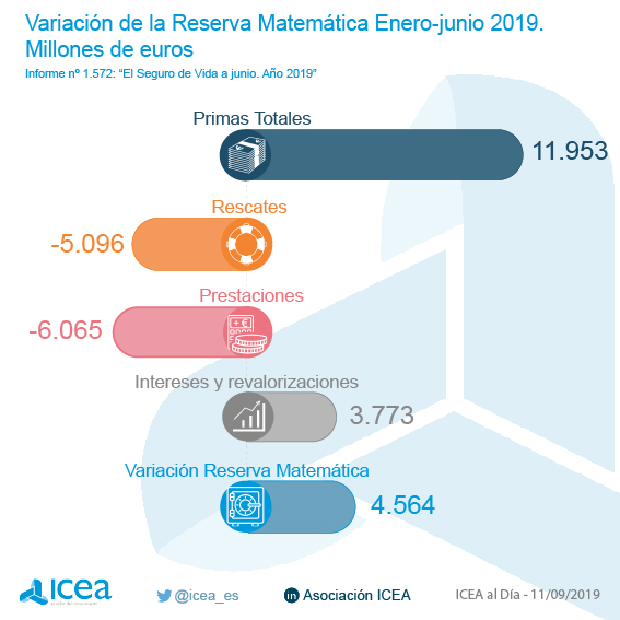 A 30 de junio de 2019, la reserva matemática de los seguros de Vida Ahorro ha ascendido a 193.489 millones de euros, lo que significa 4.564 millones más respecto al año anterior, según datos facilitados por ICEA. Además, informa que los seguros con garantía de interés aportan 3.256 millones, mientras que los vinculados a activos contribuyen con 1.309 millones.