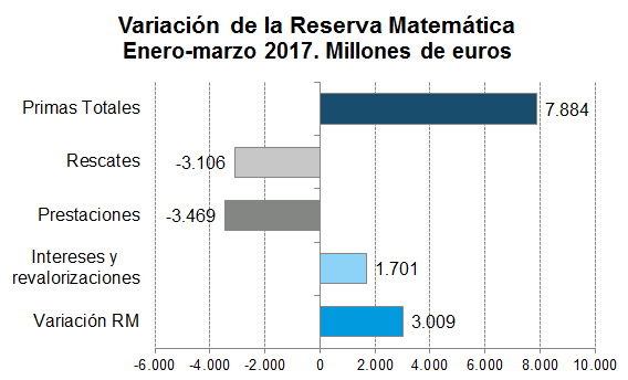 A 31 de marzo, las reservas matemáticas de los seguros de Ahorro han crecido en 3.009 millones de euros respecto al año anterior, ascendiendo a 181.067 millones, según datos facilitados por ICEA. Esta cantidad se descompone en 2.702 millones que han aumentado los seguros con garantía de interés y los 307 millones que lo han hecho los seguros vinculados a activos.