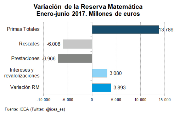 A 30 de junio de este año la reserva matemática de los seguros de Vida habían alcanzado 181.860 millones de euros, según los datos de ICEA explicados en el informe 'El seguro de Vida. Estadísticas a junio. Año 2017'.