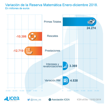 Los datos de ICEA a 31 de diciembre de 2019 sitúan las reservas matemáticas de los seguros de Vida en 194.786 millones de euros. Detalla las reservad de los seguros de ahorro crecieron en 6.147 millones con respecto al año anterior. Los seguros con garantía de interés aportaron 4.108 millones, mientras que los vinculados a activos contabilizaron 2.039.