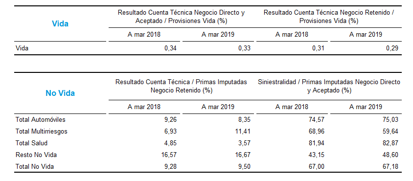 El resultado de la cuenta técnica correspondiente al conjunto de ramos de No Vida arrojó un índice del 8,55% de las primas imputadas retenidas, en comparación con el 8,42% del mismo trimestre de 2018. En cuanto a su tasa de siniestralidad, presentó una considerable mejora para cerrar en el 73,74% (79,02% un año antes), según los datos publicados por ICEA.