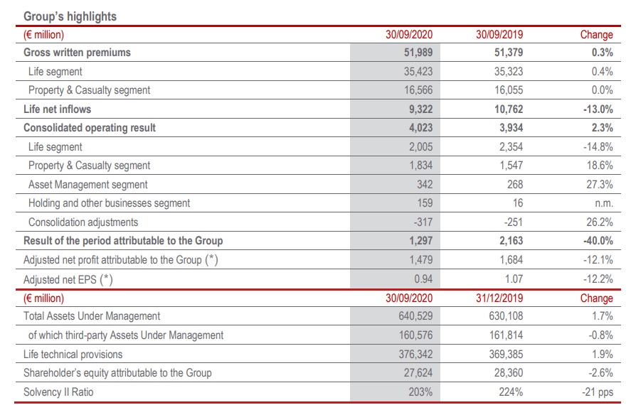 En palabras de Cristiano Borean, Generali Group CFO: "Los resultados de los nueve primeros meses del año continúan demostrando la resiliencia de Generali, como ponen de manifiesto los excelentes márgenes técnicos que soportan el resultado operativo y la posición de capital. En un contexto que sigue caracterizándose por un severo impacto macroeconómico y financiero causado por la actual pandemia, el Grupo confirma su fortaleza, basada en su posición de liderazgo en Europa y en su modelo de negocio flexible y diversificado, focalizado principalmente en el negocio retail. Generali mantiene su compromiso como socio de por vida de sus clientes, por medio de acciones de específicas de ayuda y asistencia, así como de apoyo a las comunidades donde opera, a través de iniciativas como el Fondo Internacional Extraordinario para Covid-19".