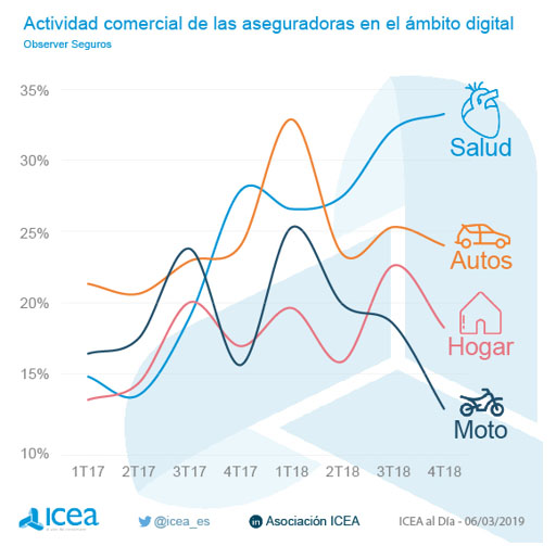 Según ICEA este incremento en medios digitales se debió a la "mayor presión comercial ejercida por las entidades en varios ramos o línea de seguros simultáneamente".