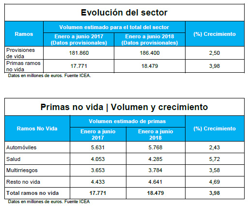 Los ingresos de las aseguradoras por la venta de pólizas a cierre del pasado junio ascendieron a 33.979 millones de euros, prácticamente lo mismo que un año atrás (-0,04%). De este importe, 18.479 millones correspondieron al ramo de No Vida y los 15.501 millones restantes al de Vida, según muestran los datos provisionales recabados por ICEA difundidos por Unespa.
