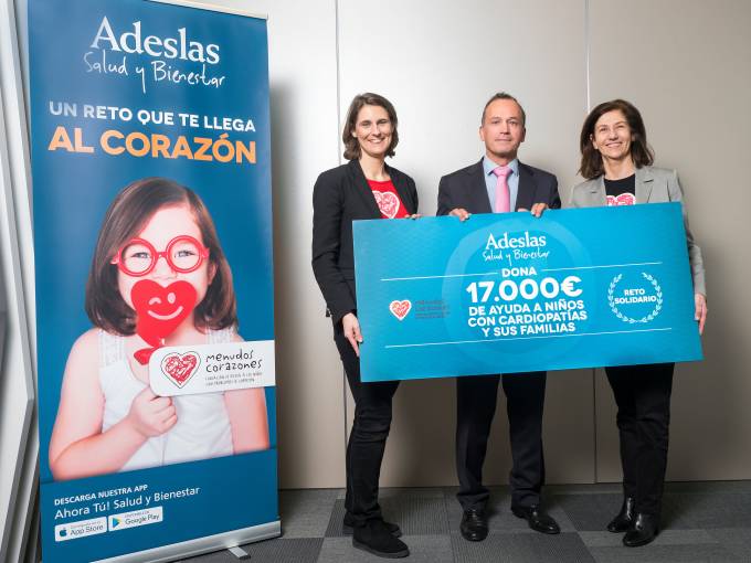 SegurCaixa Adeslas ha hecho entrega a Fundación Menudos Corazones de un cheque de 17.000 euros para contribuir a los programas sociales que realiza dentro y fuera de los hospitales. La aportación se ha conseguido gracias al compromiso de cerca de 200 empleados de la compañía que participaron en el reto solidario '1 Km=1 Latido'. Esta iniciativa, desarrollada entre el 4 y el 21 de diciembre del año pasado a través de la plataforma Salud y Bienestar, convierte cada kilómetro recorrido en un donativo para ayudar a personas con cardiopatías congénitas y a sus familias.