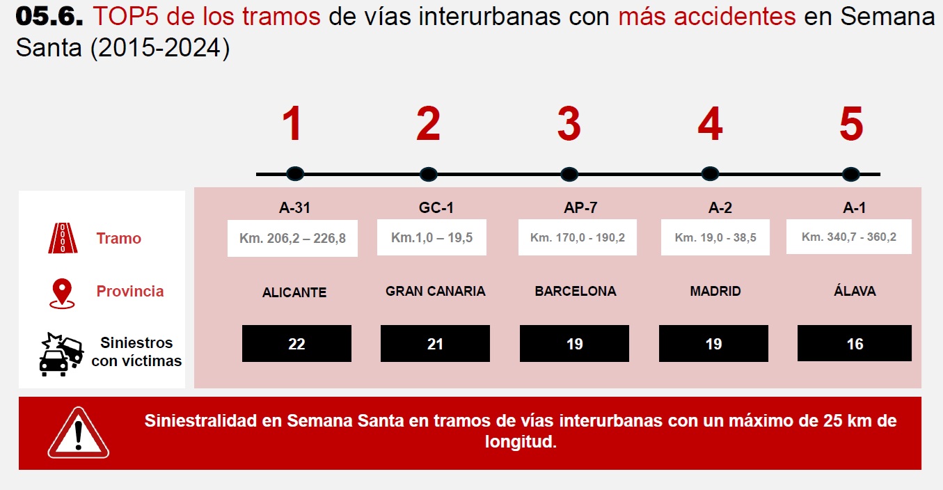 Semana Santa es la época más peligrosa del año en las carreteras españolas, tal y como señala el nuevo estudio de Fundación Línea Directa realizado en colaboración con Fesvial, titulado 'Los días más críticos. Accidentalidad en Semana Santa (2015-2024)', en el que analiza la evolución de los accidentes de circulación y víctimas en la última década.
