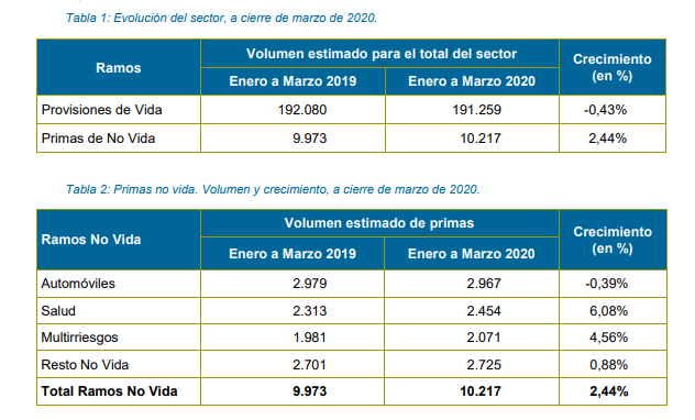 El sector asegurador acusa el momento actual del estado de alarma y el parón económico que ello conlleva. Según los datos que acaba de hacer público Unespa, con información de ICEA, el volumen de primas durante el primer trimestre alcanzarían los 16.699 millones de euros, lo que implica una caída del 6,83% respecto a los datos del mismo periodo del año anterior.