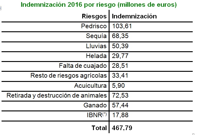El ejercicio 2016 puede considerarse como de siniestralidad contenida, con unas indemnizaciones de 467,79 millones de euros y una superficie afectada de 960.000 hectáreas.