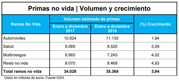 Otros ramos importantes de No Vida como los Multirriesgos registraron unas primas de 7.245 millones y un avance ligeramente por encima del 4%. El ramo de Autos alcanzó primas superiores a los 11.100 millones y un crecimiento del 1,94%.