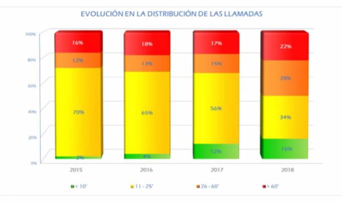 El tiempo de respuesta de los call center que gestionan siniestros de Multirriesgos sigue deteriorándose en los últimos años. En 2018 el promedio de respuesta se ha situado en 61 segundos, lo que indica un tiempo un 15,1% superior a los datos de un año antes e implica un aumento superior al 56% desde 2014 cuando el tiempo de respuesta se situaba en los 39 segundos.