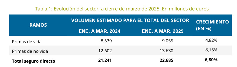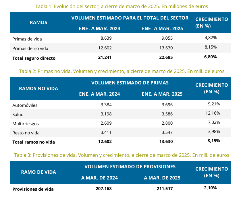El seguro español mejora sus primas al cierre de marzo un 6,8%, hasta los 22.700 millones