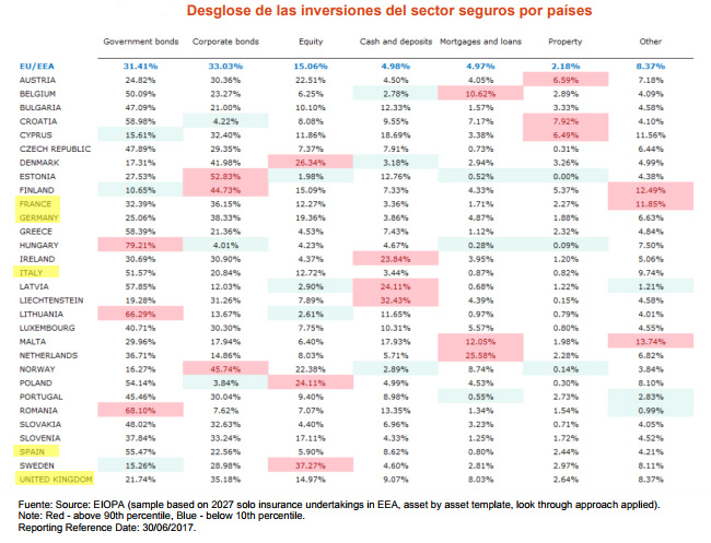 AFI ha analizado las inversiones de las aseguradoras europeas basándose en el último informe sobre la estabilidad financiera del sector publicado en diciembre por Eiopa, y que revela significativas diferencias en cuanto a políticas de inversión en los distintos países de la UE. El análisis se ha centrado en los 5 principales mercados: Alemania, Reino Unido Francia, Italia y España. Del estudio de esta información se extraen varias conclusiones.