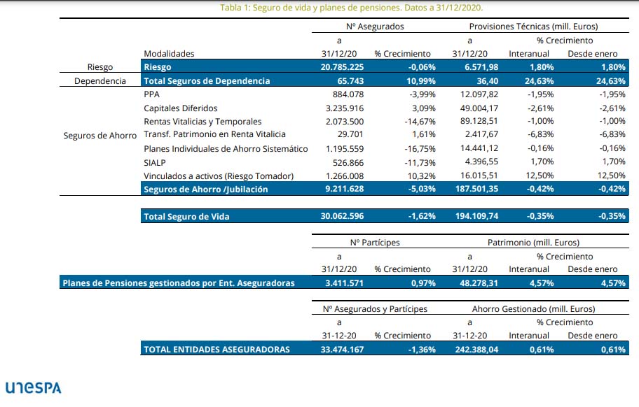 derivados de una caída de los de Ahorro de algo más del 5%. Por su parte, los Planes de Pensiones que gestionan aseguradoras cuentan con 3,4 millones de asegurados y un crecimiento de cerca del 1% respecto a 2019.