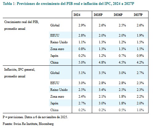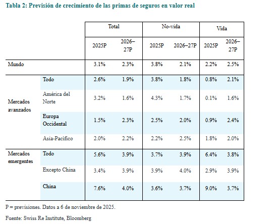 El seguro mundial apunta a crecer un 3,1% en 2025 y un 2,3% en los 2 años siguientes