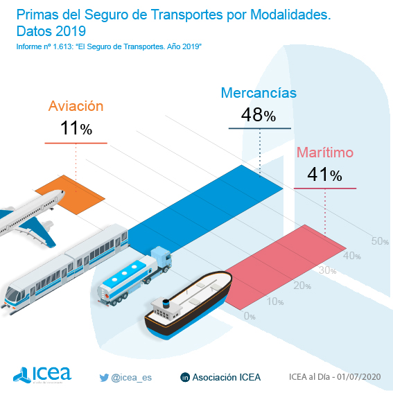 Los datos finales de ICEA sitúan el volumen de primas del seguro de Transportes en 498 millones de euros en 2019, elevando los datos de la muestra al 100%. Supone un crecimiento del 8,3% frente al año anterior. Transportes representó el 1,4% del conjunto de Ramos No Vida.