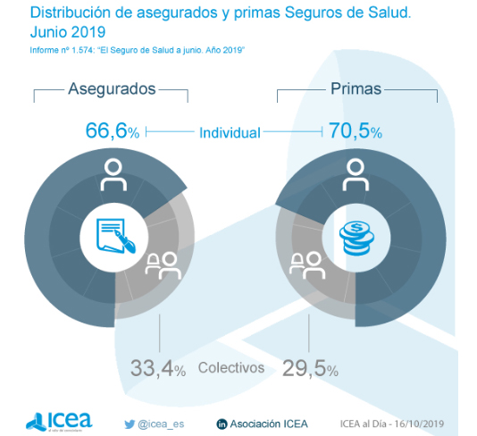 Hasta el primer semestre del año los seguros Colectivos de Salud crecieron un 6,3% en primas y un 5,9% en asegurados. Mientras tanto, los seguros Individuales aumentaron en los primeros 6 meses del año un 3,2% en primas, según los datos de ICEA. Aun así, la modalidad de Individuales supone el 70,5% de las primas y el 66,6% de los asegurados.