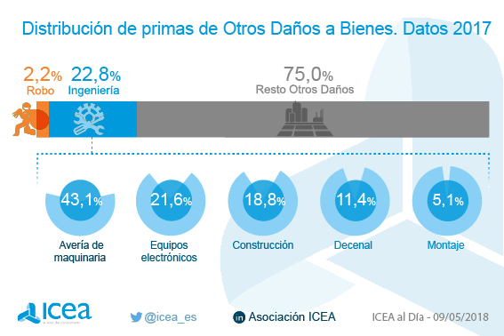 Dentro de Otros Daños a los Bienes los seguros de Ingeniería alcanzaron un volumen de negocio en 2017 de 246,4 millones de euros (+1,3%), alcanzando una cuota del 22,8% en ese ramo. Según ICEA, el seguro Decenal y el de Equipos electrónicos fueron las únicas modalidades que crecieron, concretamente un 17,1% y un 8,1% respectivamente.