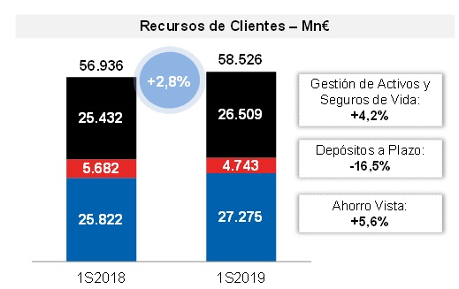 Los ingresos recurrentes han avanzado hasta 469,5 millones de euros, un 1,1% más que en el primer semestre de 2018, impulsados principalmente por los ingresos vinculados a gestión de activos y bancaseguros, de modo que el Banco consolida la tendencia de aumento de este epígrafe que inició en 2016.