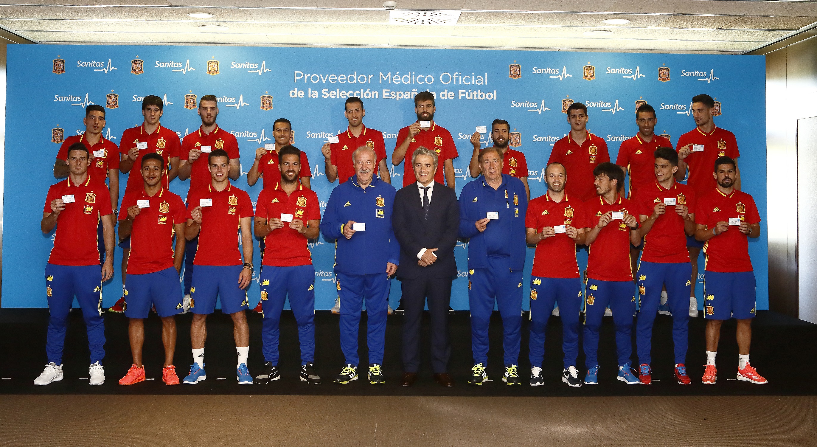 Los 23 convocados por Vicente del Bosque y el propio seleccionador han recibido sus tarjetas de Sanitas de la mano del consejero delegado de la compañía, Iñaki Ereño.