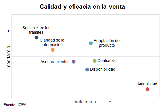 ICEA confirma que sus últimos Estudios de Experiencia del Cliente de 2015 entre clientes que contratan un seguro de Autos o de Hogar muestran que el cliente valora al personal de venta muy positivamente en amabilidad, disponibilidad y confianza. En cambio, son menos valorados la claridad de la información facilitada, la sencillez en los trámites y el asesoramiento realizado. “Esta situación también se manifiesta en el último estudio de Calidad y Eficacia en la Venta realizado por ICEA, que mediante auditorias en el punto de venta (Mystery Shopper), determina que la atención y disponibilidad del personal son los aspectos mejor valorados en las visitas, y por el contrario, las oficinas presentan áreas de mejora en el asesoramiento realizado y cierre de la venta”, precisa ICEA.