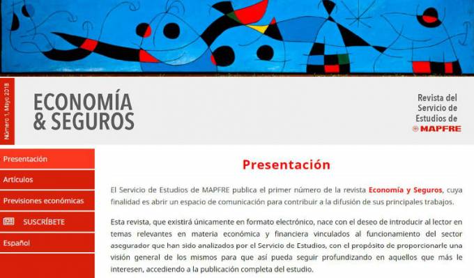 El Servicio de Estudios de Mapfre ha lanzado hoy una revista electrónica, Economía & Seguros, con periodicidad semestral, para ofrecer a los lectores información sobre temas relevantes en materia económica y financiera vinculados al funcionamiento del sector asegurador. La revista ofrece igualmente las previsiones que elabora el Servicio de Estudios en relación a las principales magnitudes macroeconómicas, tales como PIB, inflación, tipo de cambio o tipos de interés. Además, de forma periódica contará con colaboraciones especiales sobre temática aseguradora analizadas desde una perspectiva global por una red de colaboradores reconocidos.