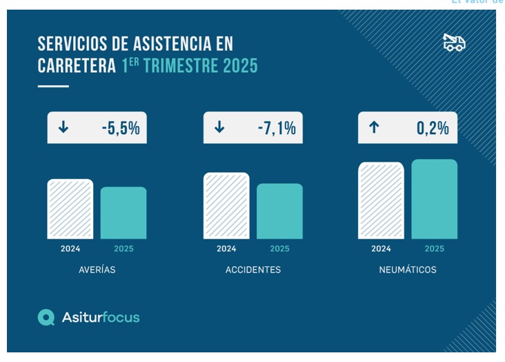 Los servicios de asistencia en carretera han experimentado un descenso del 5,2% en el primer trimestre del año respecto al mismo periodo del año anterior. Recordemos que 2024 cerró ya avanzando esta tendencia, aunque con bajada ligera de tan solo el 0,5%, según datos de Asitur.
