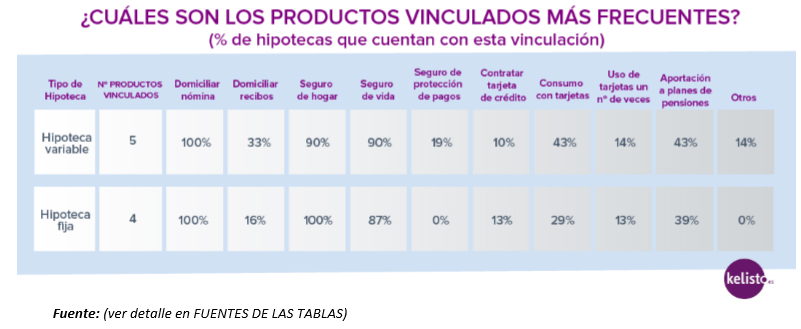Las entidades de crédito exigen una vinculación media de 5 productos, siendo las más frecuentes la domiciliación de la nómina para el total de estos créditos y la contratación de un seguro de Hogar y otro de Vida, presente en el 90% de las ofertas. La futura ley hipotecaria prohibirá, recuerda Kelisto, que el banco obligue a contratar productos extra, aunque sí permitirá que bonifique a aquellos que acepten cierta vinculación.