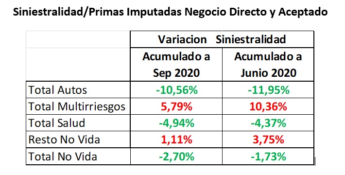 Por su parte, Multirriesgos y Resto No Vida se acercan a los datos de siniestralidad de 2019, con lo que el conjunto de ramos No Vida se benefician de forma muy importante, con una mejora de la siniestralidad por los efectos del Covid 19, según datos proporcionados por Global Actuarial.