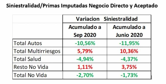 La siniestralidad en No Vida se redujo un 2,7% en el semestre. Los ramos de Auto (10,56%) y Salud (4,94%) mantienen importantes reducciones de siniestralidad.