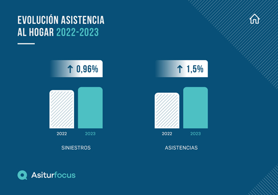 AsiturFocus ha analizado los datos de asistencias al hogar durante el pasado año y ha concluido que los siniestros en estos lugares se incrementaron un 0,96%. Añade que los daños extensivos fueron la tipología que sufrió un incremento mayor con un incremento del 11,4% más que en 2022. Indica que este dato "se relaciona estrechamente con la inestabilidad climatológica de los últimos años, ya que si bien 2023 fue uno de los años menos lluviosos, las lluvias se repartieron de forma muy desigual por la geografía española, concentrándose en puntos poco habituales como la zona centro y noroeste de la península".