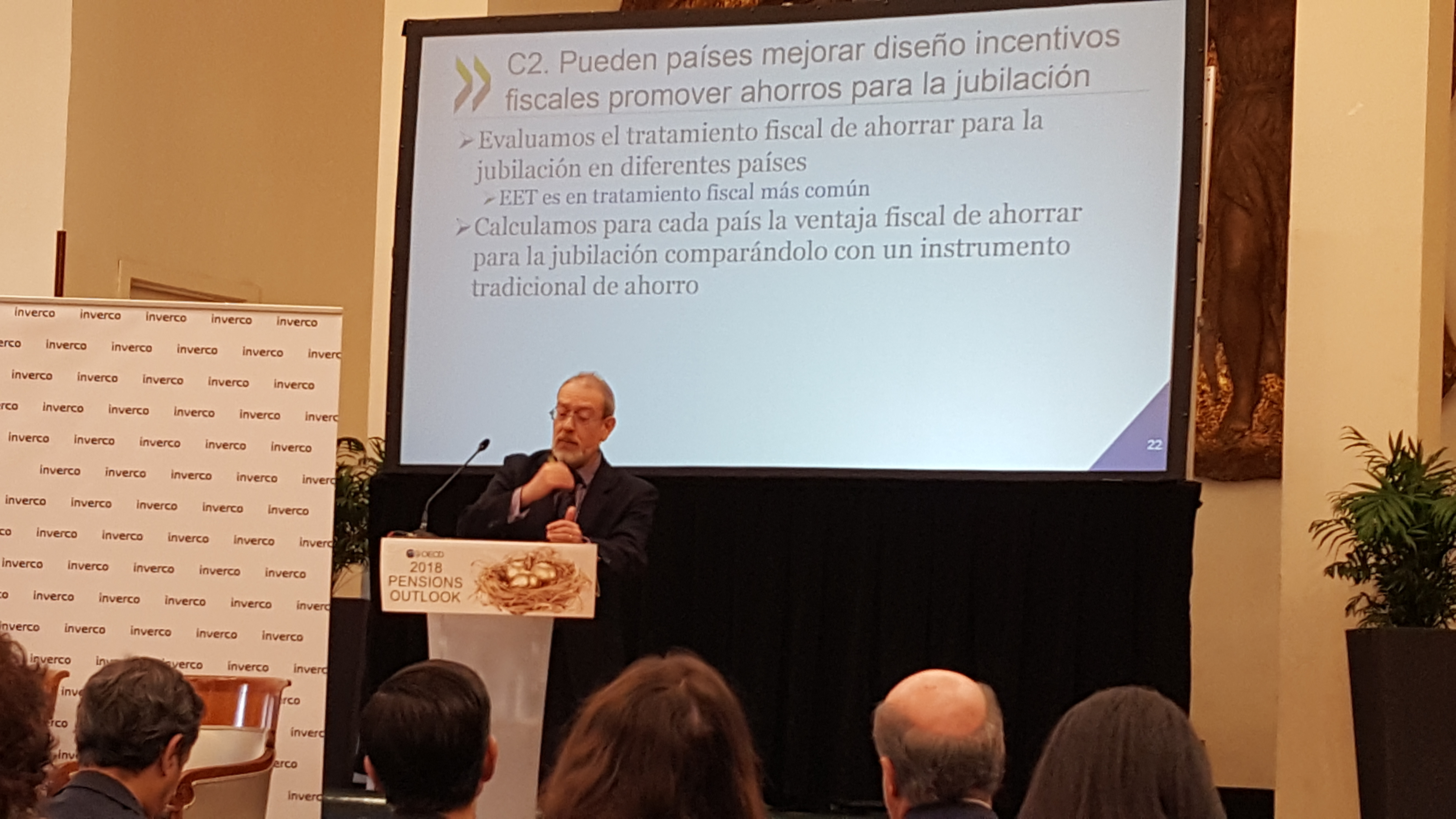 Pablo Antolín, jefe de la Unidad de Pensiones de Capitalización de la OCDE, presentó el último informe de la organización 'Pensions Outlook 2018'. Su primera conclusión fue clara: "el sistema español de capitalización no cumple las recomendaciones de la OCDE". Para lo que no cabe otra alternativa que mejorar su diseño. "En España hay que hacer una reforma integral", dijo.