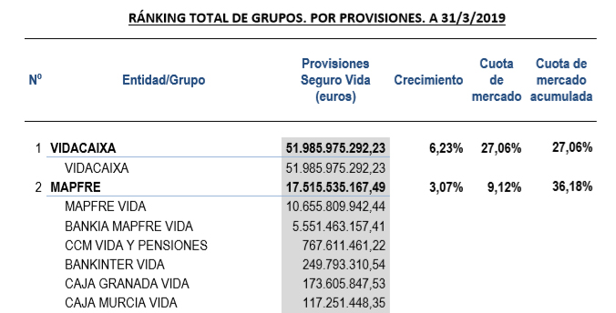 En cuanto a los grupos, VidaCaixa continúa comandando el ranking. Logra hasta marzo un avance del 6,23% y...