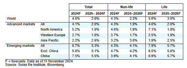 Swiss Re Institute prevé que el seguro mundial crecerá de media al año un 2,6% en 2025 y 2026