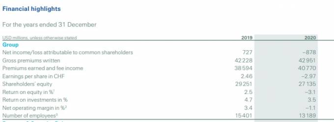 Swiss Re pierde 878 millones de dólares en 2020