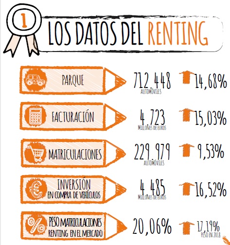 El parque de vehículos en renting alcanza las 712.448 unidades y registra su mayor crecimiento absoluto sumando en el último año a su parque 91.186 unidades. Esto supone un incremento del 14,68% sobre el mismo período del año anterior, según datos de la Asociación Española de Renting de Vehículos.