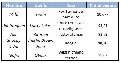 Los perros de los comic más conocidos no pertenecen a razas catalogadas como potencialmente peligrosa, pero sí podemos encontrar diferencias entre las primas de sus seguros. Así, el seguro de mascotas que deberá pagar Tintín por su pequeño Milú (Fox Terrier), tiene la prima más cara, con un precio de 107,77 euros, un 20% más cara que la prima del seguro de Ideafix (West Highland Terrier), ya que Obélix tendría que abonar la prima más barata de todos los perros del comic: 89,62 euros.