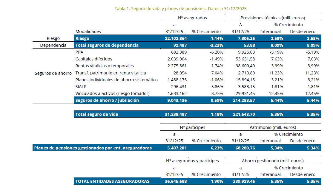 Los seguros unit-linked, que elevaron su patrimonio bajo gestión un 12,45% y se situaron en 29.931 millones de euros, y la transformación de patrimonio en rentas vitalicias, que aumentó las provisiones técnicas un 11,23%, hasta situarse en 2.714 millones de euros han sido los principales detonantes del crecimiento del ahorro gestionado por las aseguradoras a cierre de 2025.