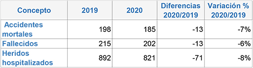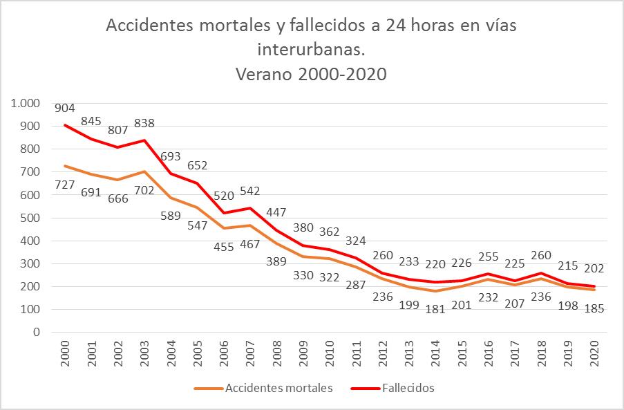 De los 202 fallecidos, 114 personas perdieron la vida en julio (3 menos que hace un año) y 88 en agosto (10 menos). En total se produjeron 185 accidentes mortales (105 en julio y 80 en agosto), experimentándose una caída del 7% respecto a 2019. Ha sido el agosto con menor número de fallecidos de la serie histórica y, además, ha registrado dos días con 0 fallecidos.