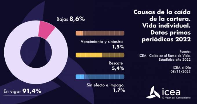 La vida media de la cartera de Vida individual se sitúa en 11,1 años, según datos de ICEA, aunque un 8,6% de las primas periódicas se anulan antes de un año por estos tres principales motivos: el vencimiento del siniestro (1,5%), el rescate (5,4%) y el impago (1,7%).