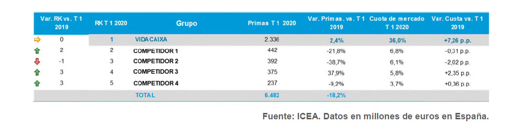 También destacó la comercialización de productos como la Renta Vitalicia Inversión Flexible que ha acumulado más de 730 millones de euros en primas; las soluciones de ahorro periódico como la Cuenta CaixaFuturo PIAS que superó los 350 millones de euros; o el Unit Linked Valor Activo que, tras poco más de un año en el mercado, ha superado en este primer trimestre los 250 millones de euros en primas.